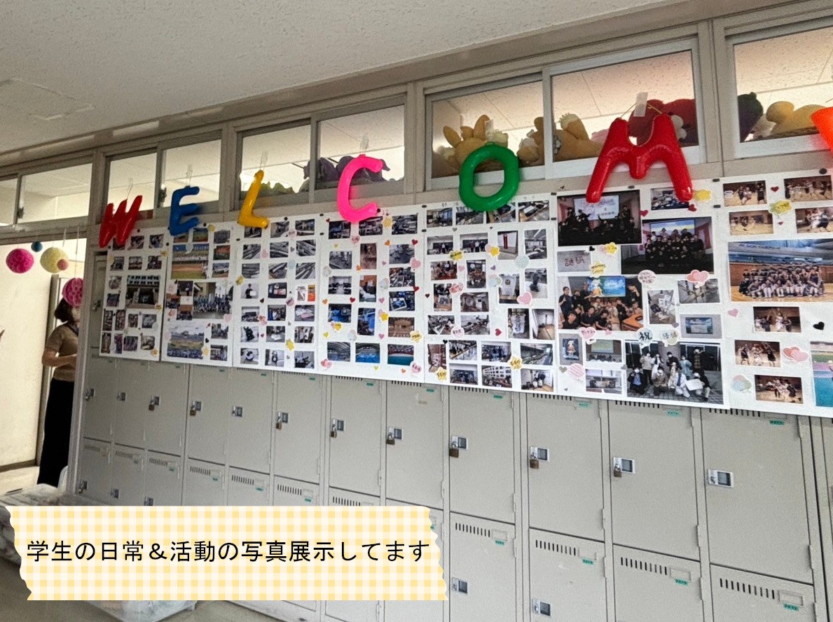 学生達の学校生活の写真や学校案内パネルの展示をしてます